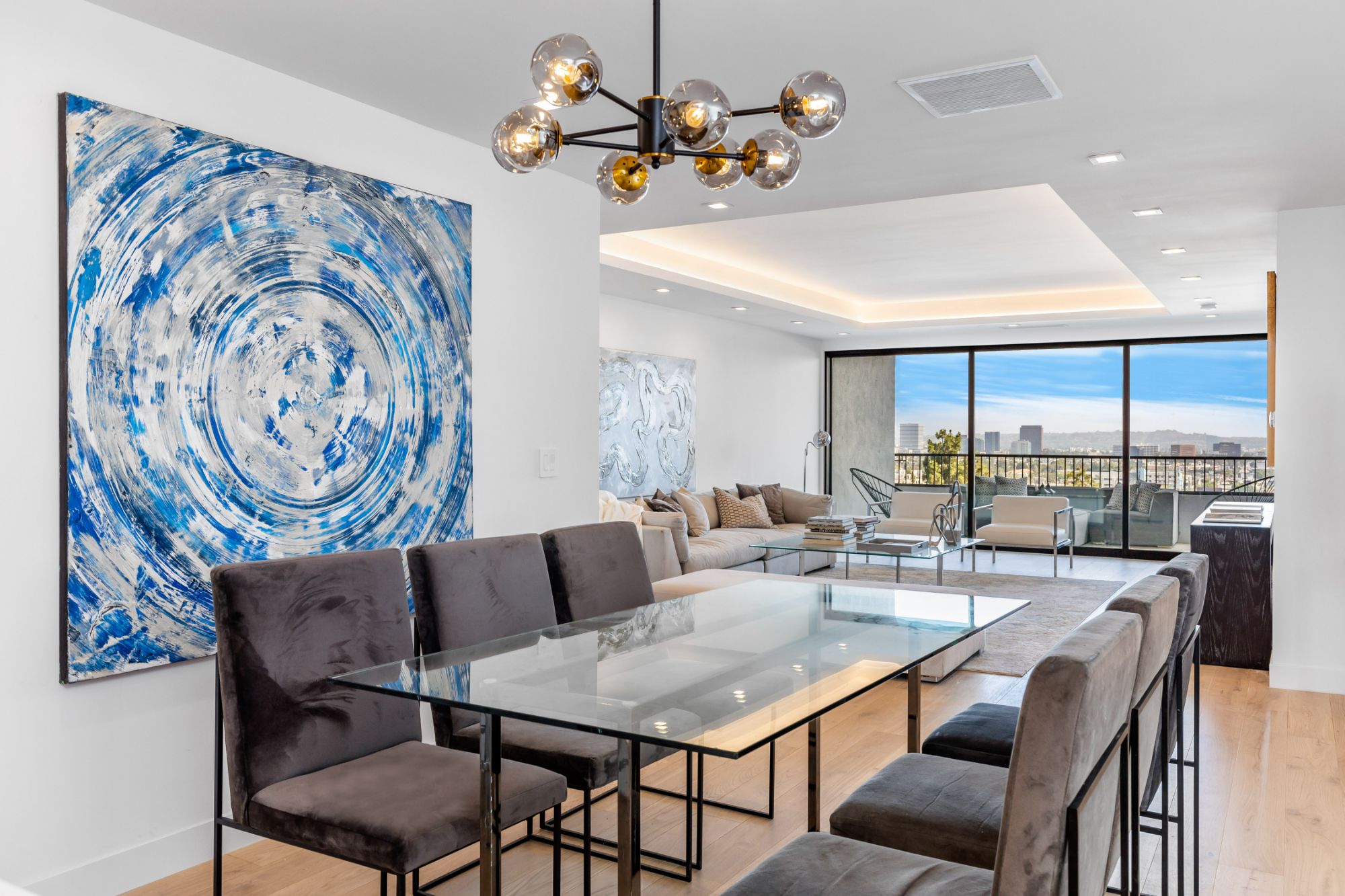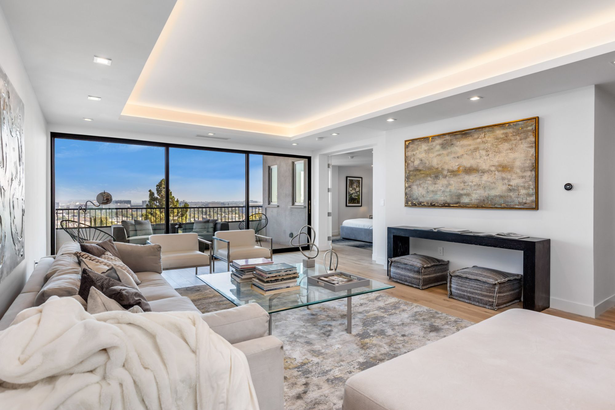 One of the most immaculate units in Empire West, this two bedroom, two bathroom was just renovated with the finest finishes. This rare unit offers sweeping views of the city, hills, and ocean with a spacious and private terrace. Double doors lead you to a breathtaking open floor plan living and dining area. The beautifully updated kitchen offers state of the art new appliances. A grand hallway leads you to the primary suite and additional bedroom. The full service building offers 24 hour security, valet, rooftop pool, fitness center and tennis court.