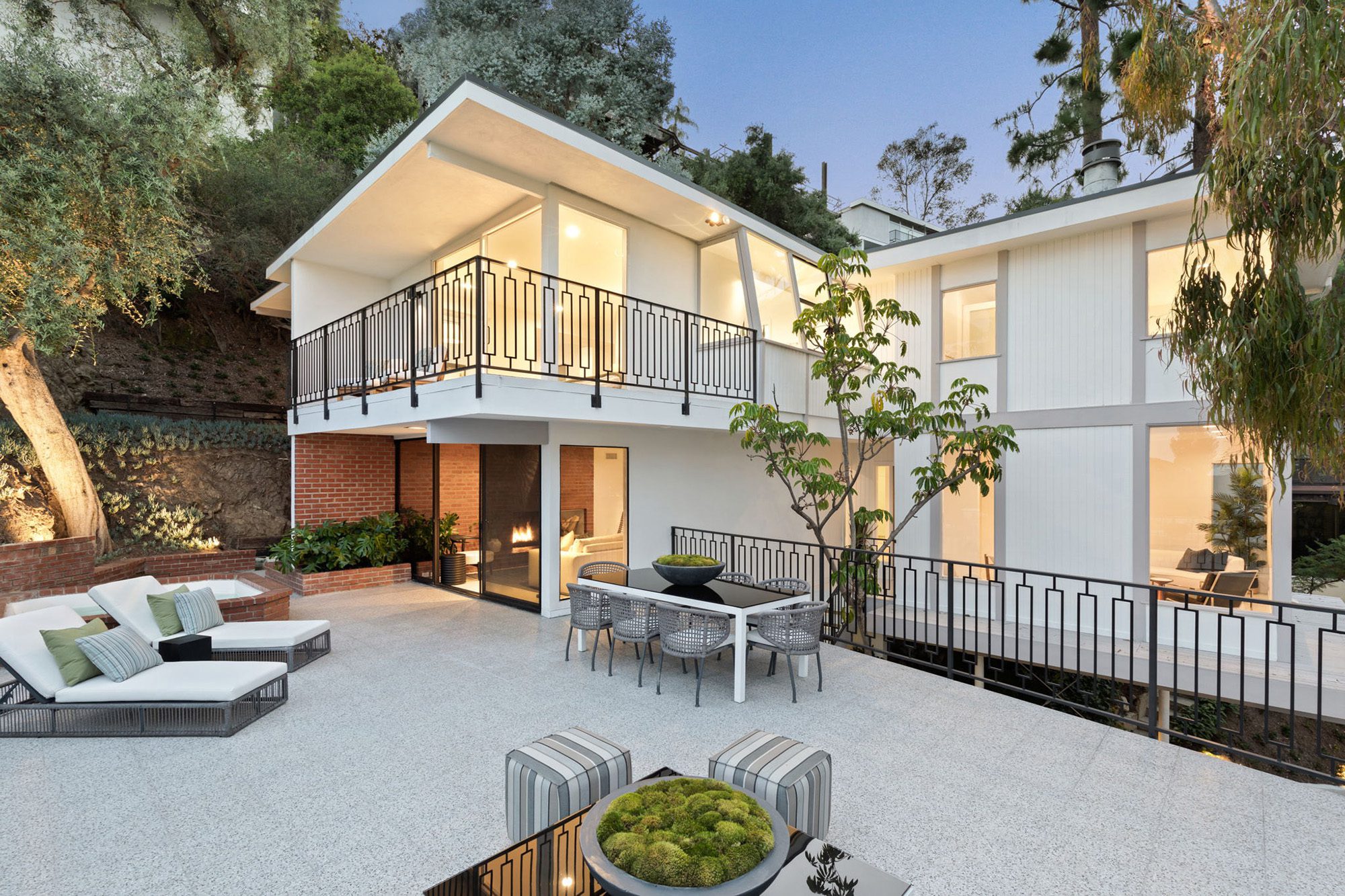 Welcome to your private retreat, a meticulously restored 1952 midcentury modern gem designed by renowned architects Douglas A. Brown and Matlin & Dvoretzky. Nestled into the hillside on a serene cul-de-sac at the top of coveted Sierra Alta Way, the residence boasts 3 bedrooms and 2 1/2 baths and expansive floor-to-ceiling windows designed to showcase the natural surroundings and breathtaking city views. Step into the cantilevered formal living room, adorned with a captivating travertine fireplace and built-in custom bar, creating the perfect ambiance for indulging in cozy evenings. The generously-sized primary bedroom suite offers stunning city views, complemented by a spacious sitting room, walk-in closet and designer bathroom with a soaking tub overlooking all of West Hollywood and beyond. Immerse yourself in indoor/outdoor living as you entertain guests on the expansive deck, complete with a spa, where you can relish in the tranquil tree-top vistas of the canyon. This residence showcases a wealth of vintage details, including terrazzo floors, tasteful built-ins and a brand new period kitchen with all the top-of-the-line appliances further enhancing its timeless appeal.Now is your opportunity to live in this midcentury treasure while benefitting from every modern amenity. Located between the renowned Bird Streets and legendary Trousdale Estates, you can easily access the best of both worlds.