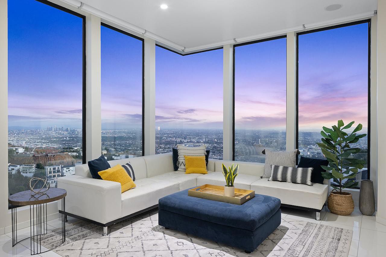 Architectural Modern-Newly Constructed 4831 Sq ft on almost ACRE of Land (36,401 sq ft) NEW MASTER BATH REMODEL with Crystal White Porcelain Floors & Hardwood throughout. Floor to Ceiling Glass Walls, Open floor plan with 20-foot Contemporary Pyramid Ceilings & Jetliner Views fromEvery Room! Steps above "Bird Streets," the waterfall atrium welcomes you into a a stunning chef's kitchen complete with grand island/breakfast bar made for casual or elegant entertaining. Main level has living room, dining room, den with doors opening into Pool, Spa, Fire pit and BBQ area - Downstairs includes 4 Bedrooms, Four bathrooms, sauna, wine room, and pathway to a quiet sitting area surrounded by tranquil greenery and gardens. 2 car garage attached to home with 1 additional space along side of house. Plenty of parking in front. Complete Privacy. Come see for yourself! Accommodating & Flexible. Welcome all offers!